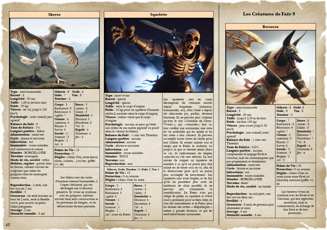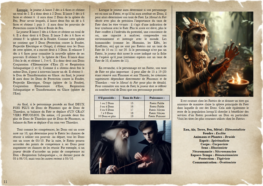3) Le Manuel du Faër : décrit la manière dont fonctionne l'univers, le Fäer, les entités. Contient la liste des sorts.