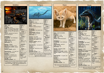 5) Le Bestiaire : décrit toutes les créatures qui peuplent les différentes terres de Katura, avec leurs caractéristiques, ainsi que plusieurs personnages.